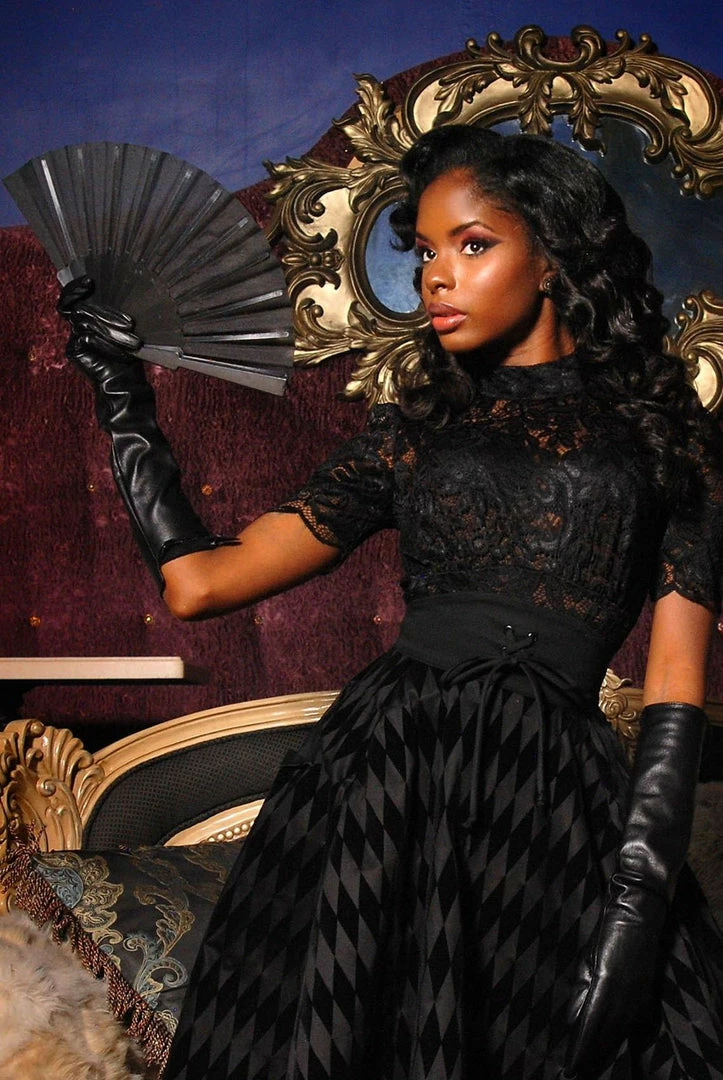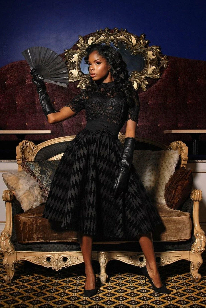 Amara Long Sleeved Swing Dress In Black Crepe | Pinup Couture