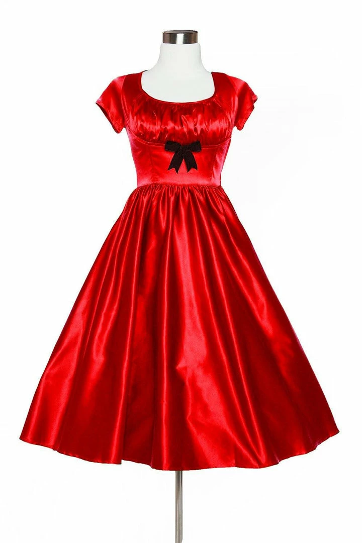 Shop All In-Stock Items By Size Final Sale – Evelyn Vintage Cocktail Dress In Red Bridal Satin | Pinup Couture