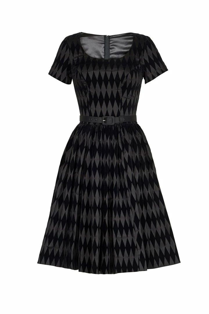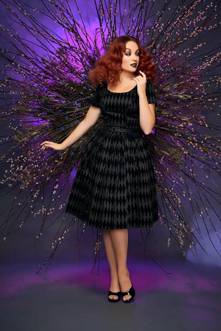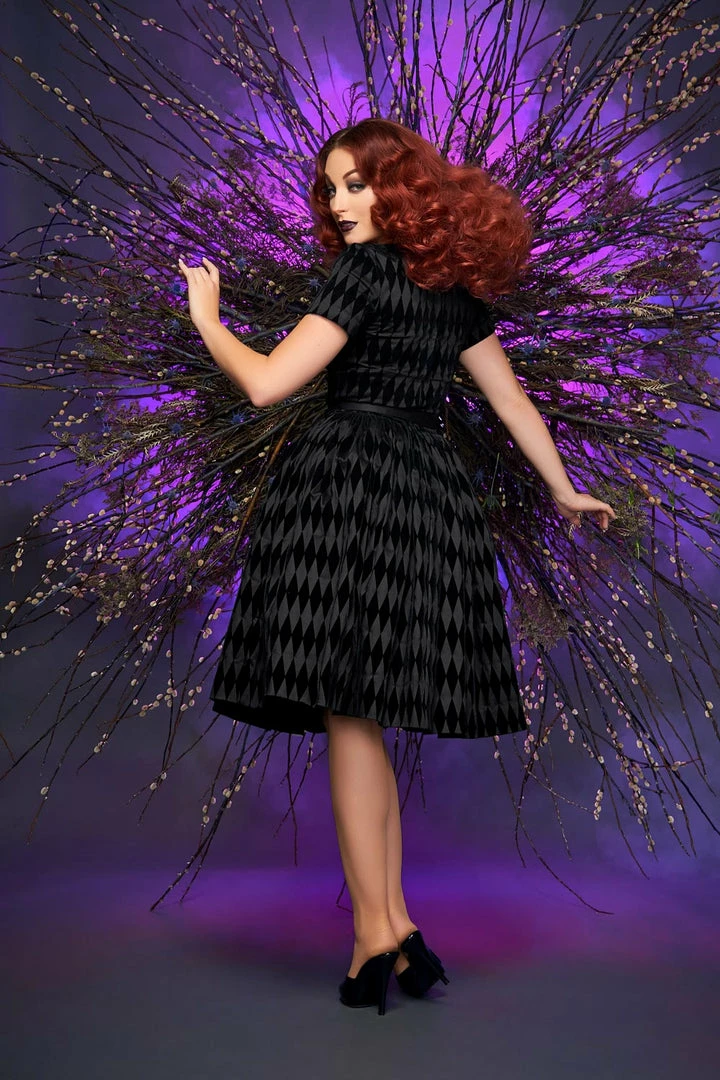 Shop All In-Stock Items By Size Final Sale – Pinup Couture Gena Dress In Black Flocked Harlequin