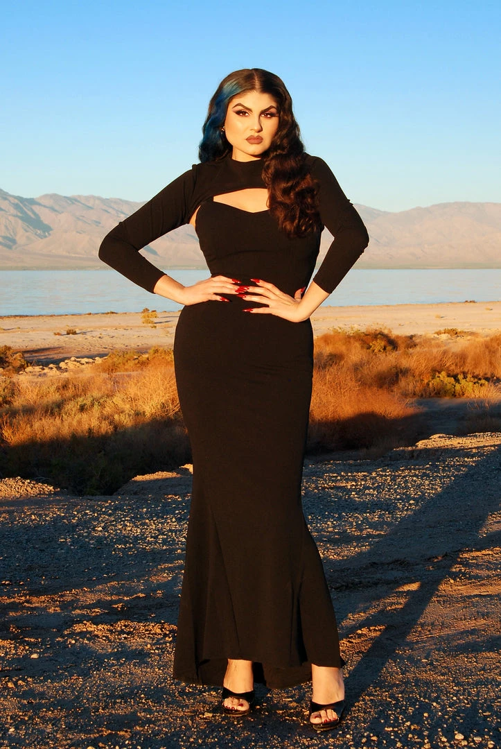 Bold, sensual and unapologetically glamorous, the Supreme Gown in chic Black Stretch Crepe embodies all the best things about her namesake. Designed by Traci Lords in collaboration with Pinup Girl Clothing’s Supreme Creatrix, Laura Byrnes, this gown will quickly become your formal favorite. Fashioned from stretch crepe that hugs your curves and flows into a spectacular fishtail hem. Adjustable straps allow you to achieve the comfortable fit you need and the removable shrug adds a flirt of cleavage and makes this a fantastic gown for both winter and summer events you need only add your favorite glittering accessories, this is the dress you’ll wear only if you want to light the room on fire!
