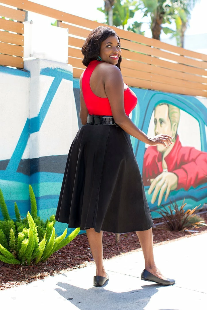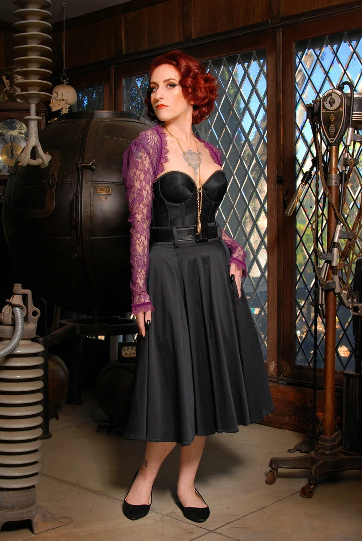 The Doris skirt is a elegant swing skirt with a full sweep and no gathers or pleats. However, it’s the 21st century, so this skirt has deep pockets. Designed as a callback to the true circle skirts of the 1950’s, It has a nipped in waistband, a back zipper, pockets, and loops for a wide belt. Made from the highest quality, heavyweight cotton sateen. If you’re looking for that added oomph under, we suggest our Twill Underskirt.