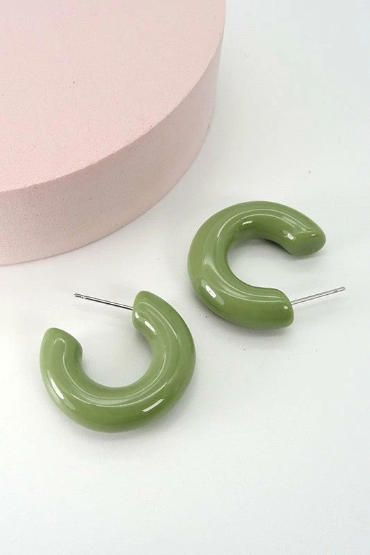 Crafted from glossy high quality acrylic resin, this enamel hoop earring is highly polished.