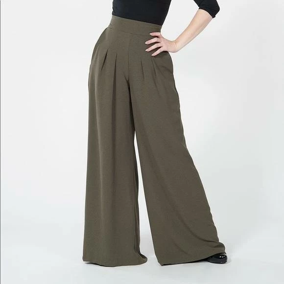 A perennial customer favorite due to the beautiful fit and silhouette they provide coupled with unparalleled comfort, these wide leg vintage inspired palazzo pants are made from a high quality poly/spandex stretch pebble crepe that drapes beautifully from tailored pleats. The waistband has elastic at back (on either side of the zipper) for a snug, yet comfortable fit at the waist, and there are deep side pockets. Fully lined. Choose from two inseams – 30″ or 32″