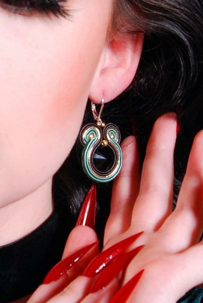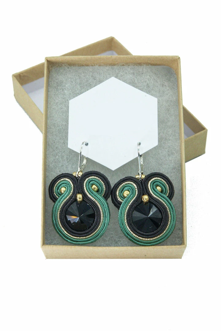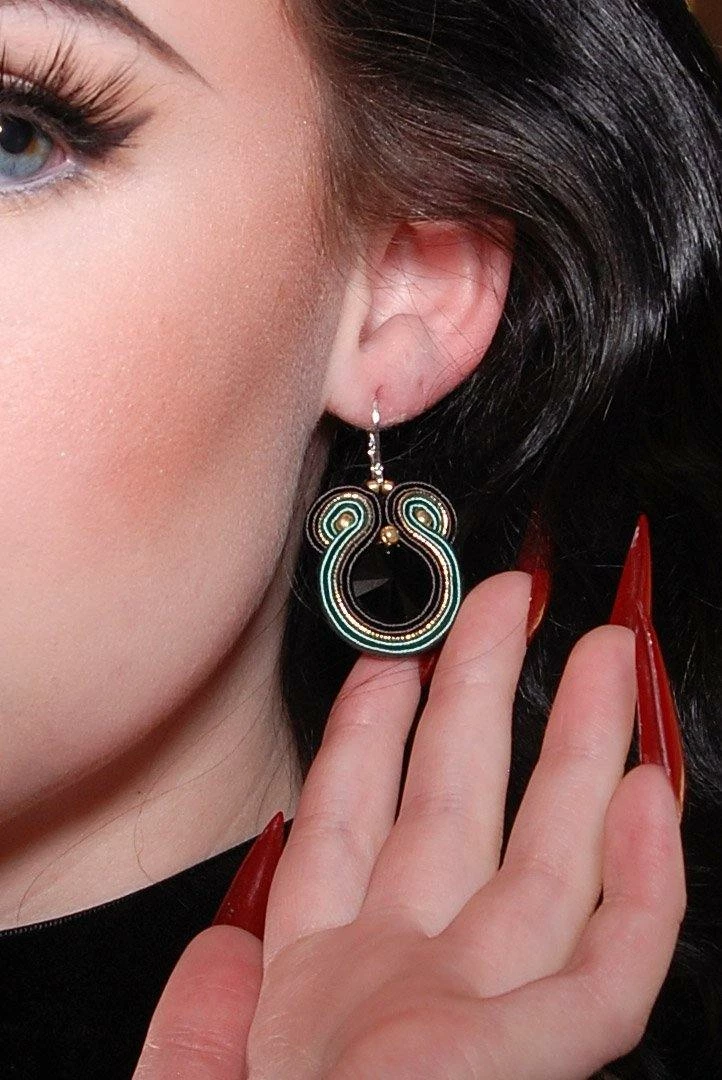 Our Twisted Snake Soutache Earrings are handmade exclusively from satin soutache braids, glass beads and crystals, and all hypoallergenic elements.