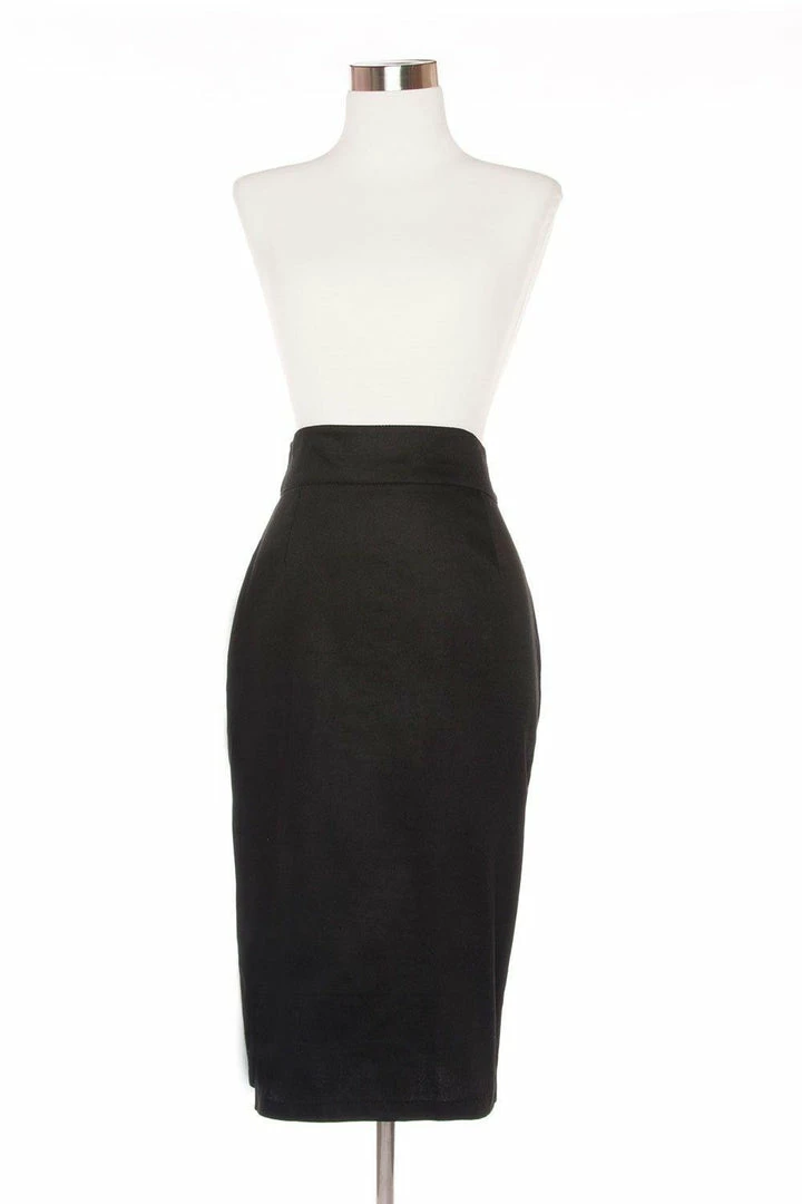 This sexy, curve-hugging skirt has a high waist with a 2″ wide curved yoke and a provocative 10″ back slit and is finished off with a back zip. Made from a high quality cotton sateen.